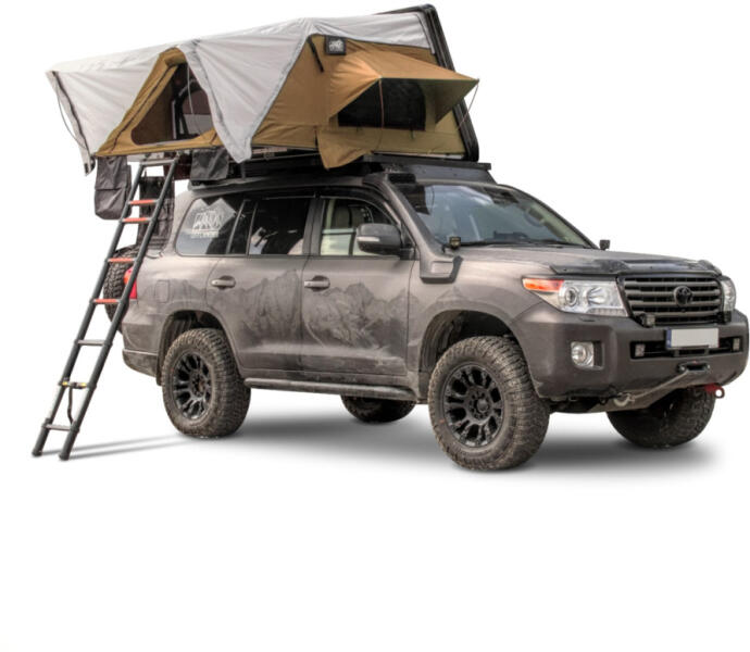 Műszaki adatok: Sátor méretei: 210 x 210 x 100 cm (H x Sz x Ma) Összecsukott sátor méretei: 210 x 125 x 25 cm (H x Sz x Ma) Súly: 75 kg Szín: homok/szürke A héj színe: fekete Matrac méretei (szélesebb részen): 205 x 190 x 4 cm (hossz x szélesség x magasság) Maximális statikus terhelés [állva]: 350 kg Rögzítőkonzolok mellékelve: akár 3 cm magas és 9 cm széles autós kereszttartókhoz is használható 4 fő részére tervezték A létra maximális magassága: 230 cm Anyaga: pamut és poliészter keveréke 280G (PU 2000mm) sűrűséggel Anyag: Felső ponyva: Oxford 420D (PU 2000-3000mm) Aljzat: "méhsejt" technológiával készült szigetelő alumínium lemezek Matrac: nem deformáló Memory Foam szivacs Teleszkópos létra: alumínium és műanyag Borítás: ABS műanyag Extrák: teleszkópos létra, cipőzseb, tető vagy teakonyha vásárlási lehetőség, LED világítás Power Bankhoz való csatlakozáshoz Garancia: 3 év